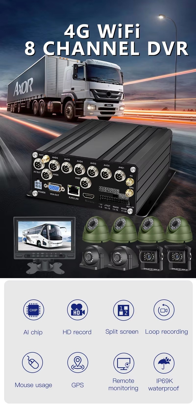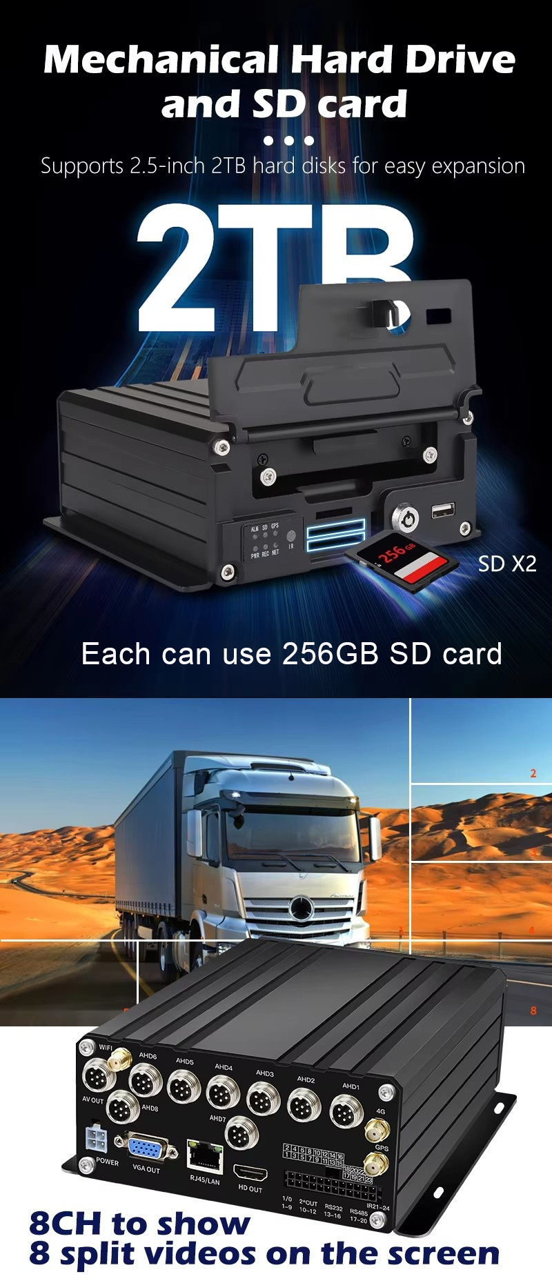 Product name 8 channel HDD Truck MDVR Solution